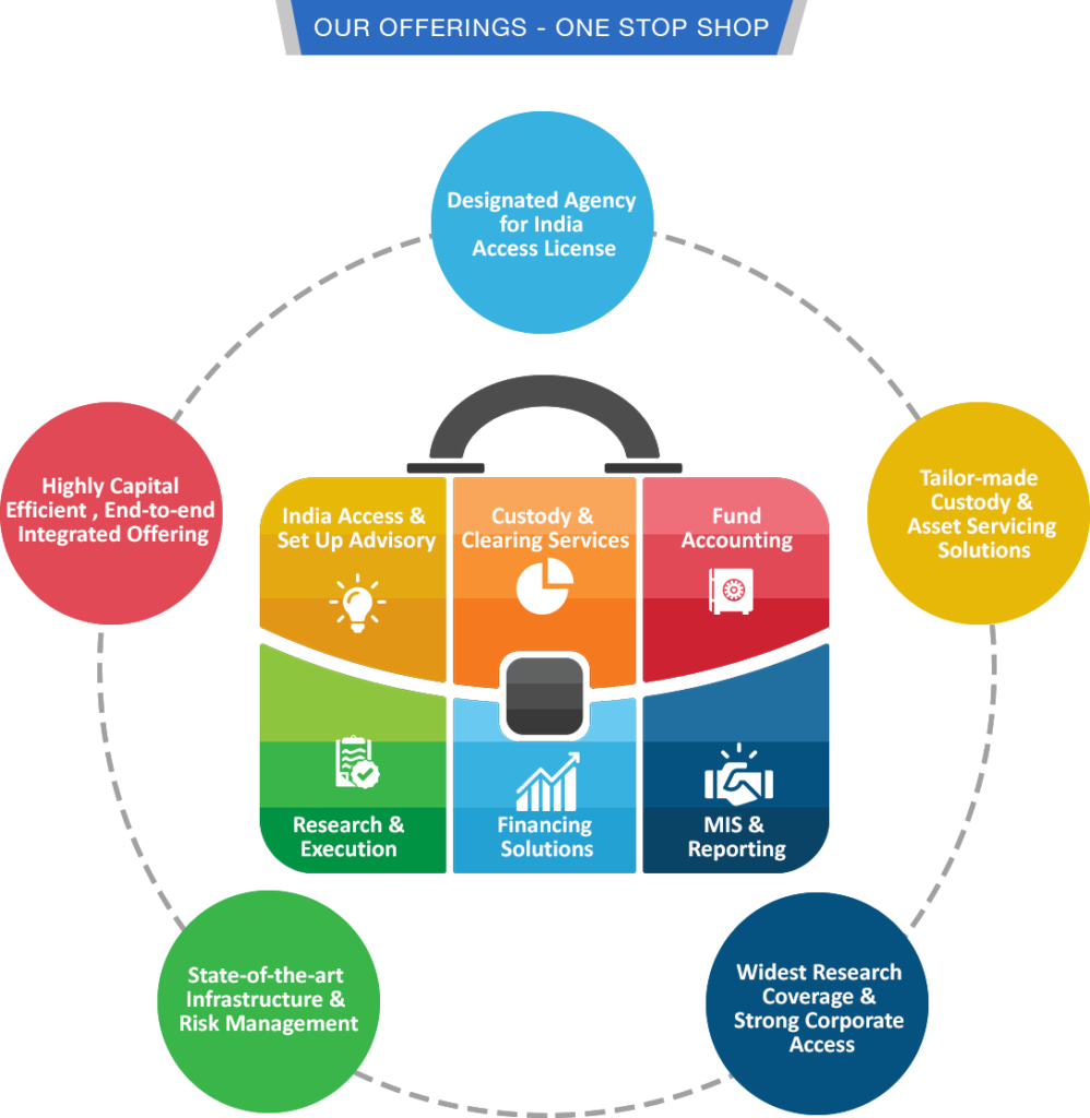 We are a one-stop shop that meets the evolving needs of asset managers and brokers/trading members by offering an integrated suite of services across asset classes. From Fund Setup Advisory, Securities Custody, Derivatives Clearing, Fund Accounting, Financing, Distribution, Research & Execution Services to Compliance Support and Value-Added Services, we offer a plug and play model that meets every business requirement.